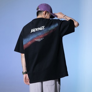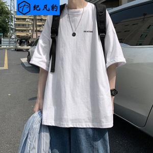 @纪凡豹 100%纯棉短袖恤男简约百搭宽松港风五分袖潮流休闲上衣服体恤ins 白色ACYNC