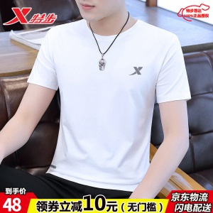 特步男装运动短袖t恤衫春夏四季新款透气潮流修身男士休闲速干套头上衣棉T户外跑步健身综训篮足球吸汗服饰