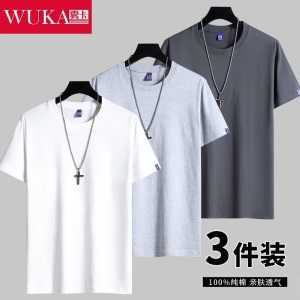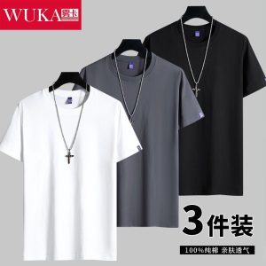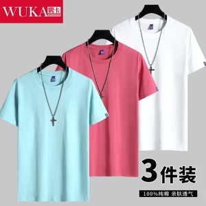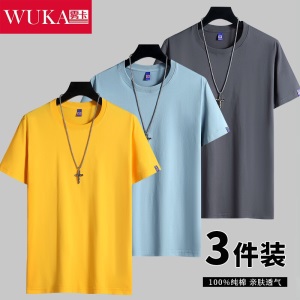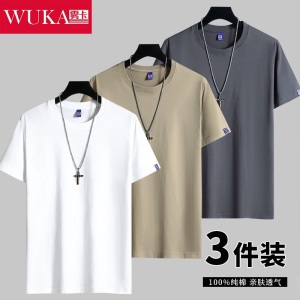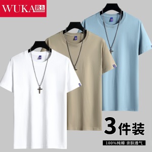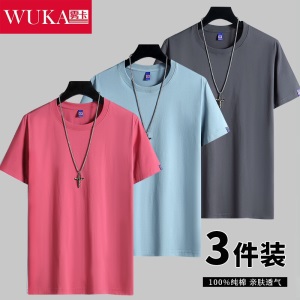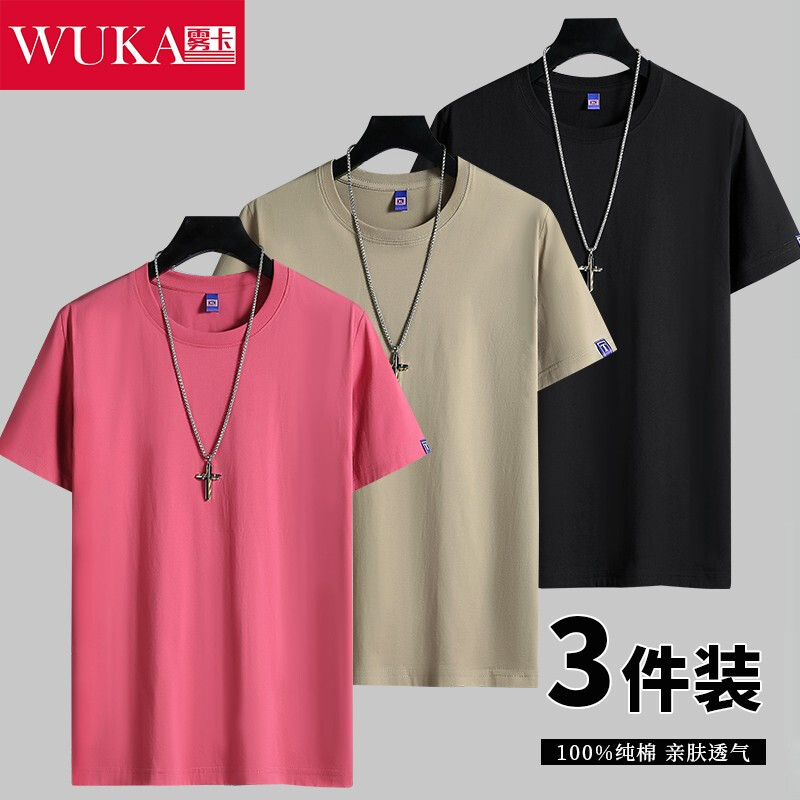 商品名称:雾卡【纯棉3件】短袖t恤男纯棉半截袖衣服纯色圆领休闲宽松潮流男生胖青年大码男士新品夏季汗衫 西瓜红+卡其+黑