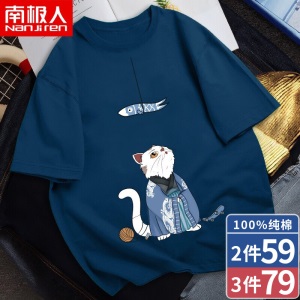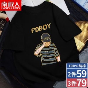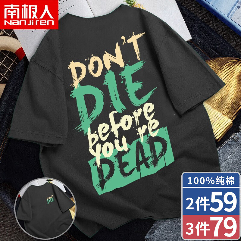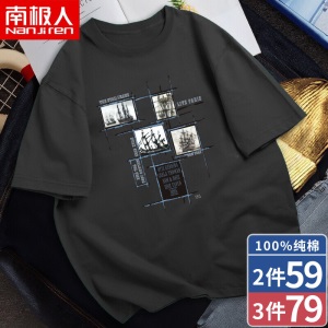 商品名称:南极人短袖T恤男纯棉韩版圆领潮流印花宽松透气学生休闲夏天衣服大码半截袖男 中灰/DIE XL (