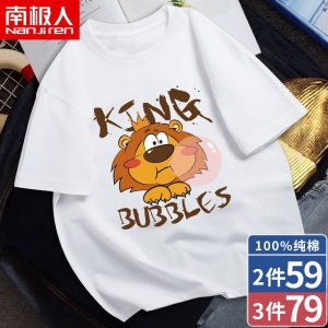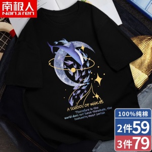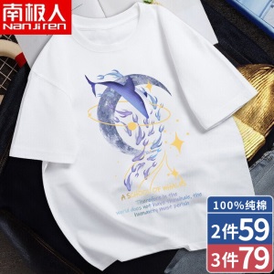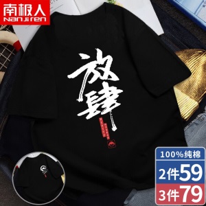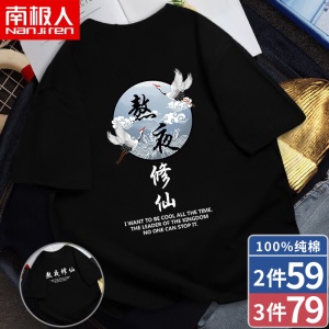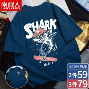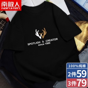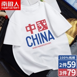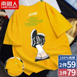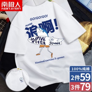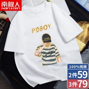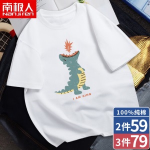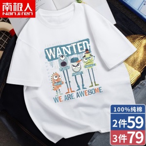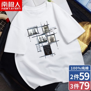 南极人【4件】短袖t恤男半截袖衣服圆领休闲潮流男生印花胖青年大码男士新品纯色夏季体恤汗衫