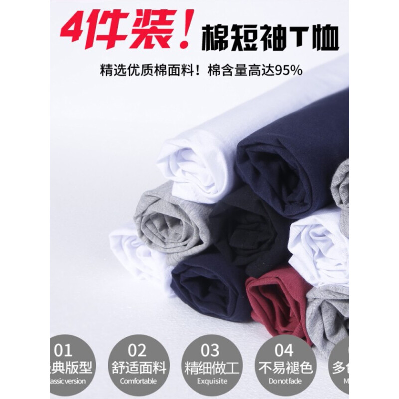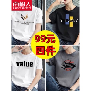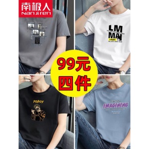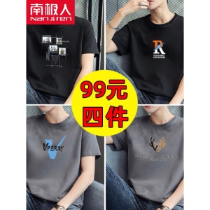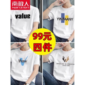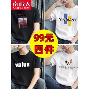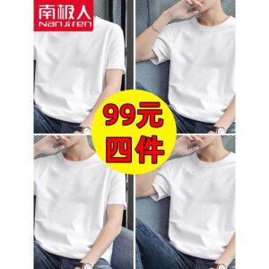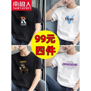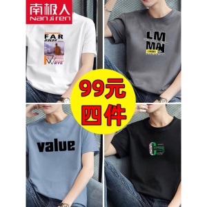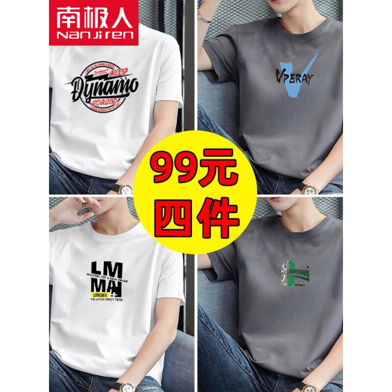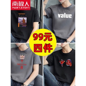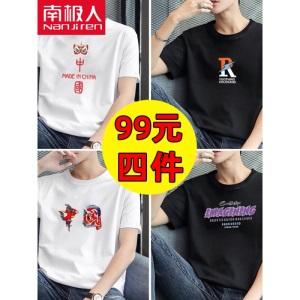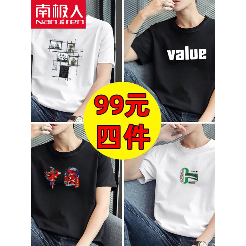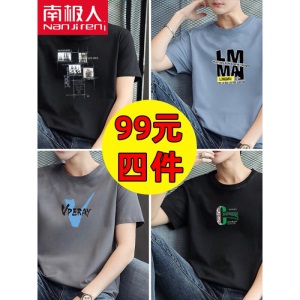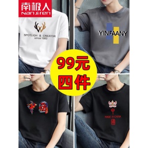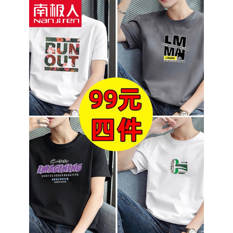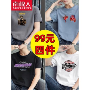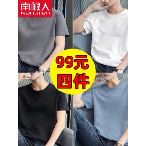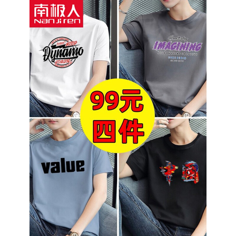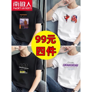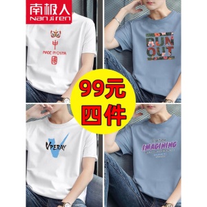 商品名称:南极人【4件】短袖t恤男半截袖衣服圆领休闲潮流男生印花胖青年大码男士新品纯色夏季体恤汗衫