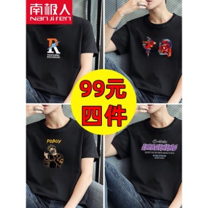 南极人【4件】短袖t恤男半截袖衣服圆领休闲潮流男生印花胖青年大码男士新品纯色夏季体恤汗衫