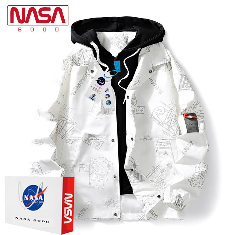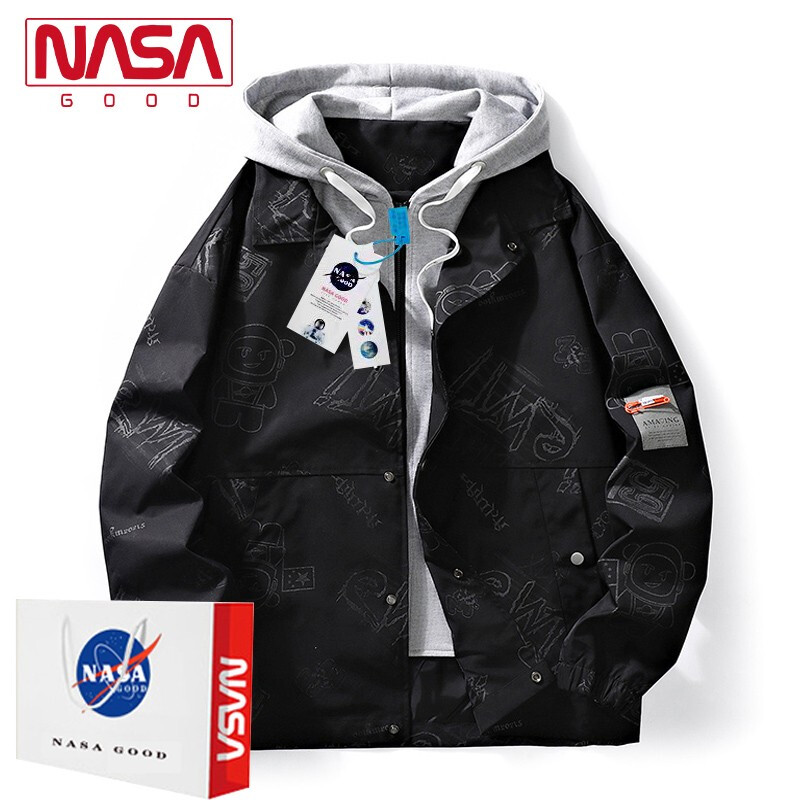 NASA旗舰店官网联名潮牌休闲外套男士春秋季潮流宽松假两件青少年连帽工装夹克衫外套男生上衣棒球服男装