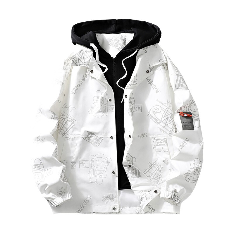 商品名称:NASA旗舰店官网联名潮牌休闲外套男士春秋季潮流宽松假两件青少年连帽工装夹克衫外套男生上衣棒球服男装