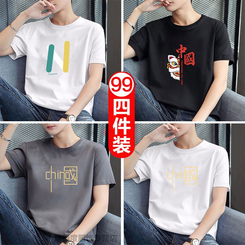 【四件装】绫帛短袖T恤男夏季款韩版休闲圆领t恤男上衣打底衫半袖衣服男装