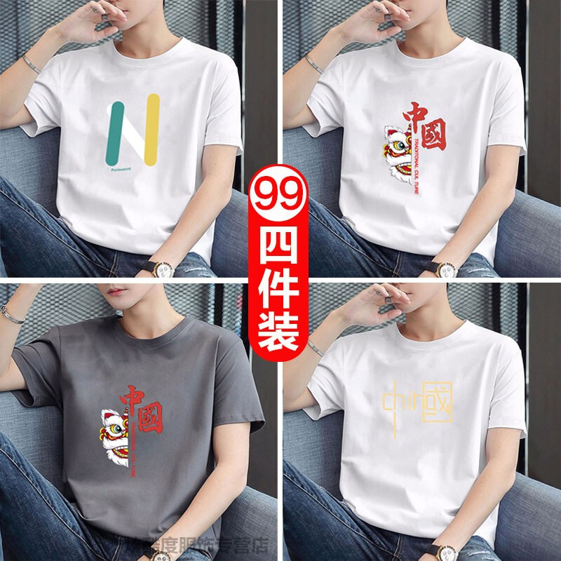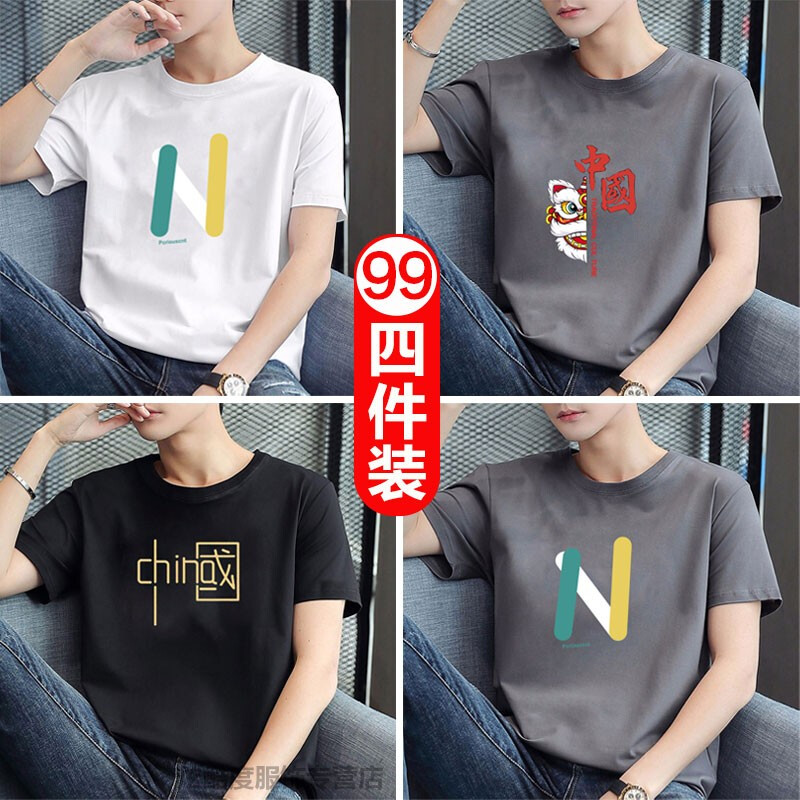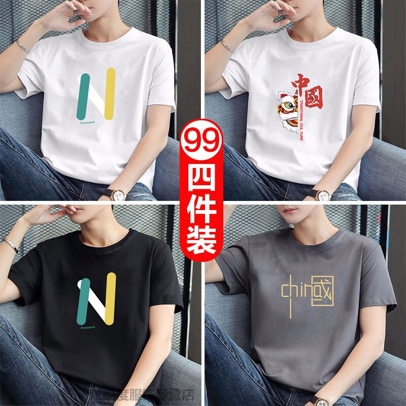 商品名称:【四件装】绫帛短袖T恤男夏季款韩版休闲圆领t恤男上衣打底衫半袖衣服男装