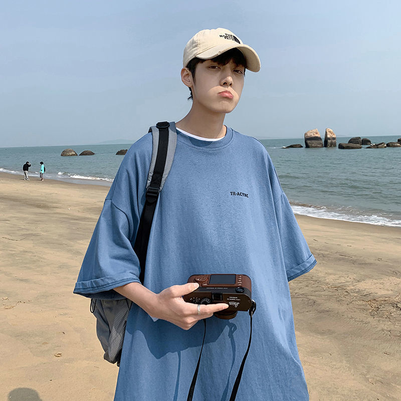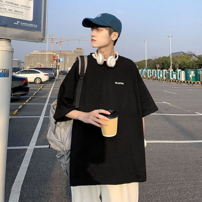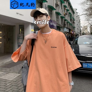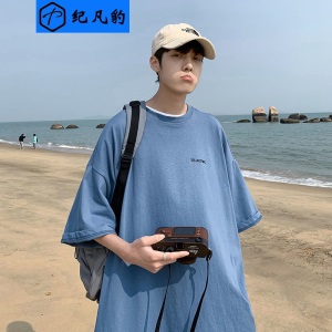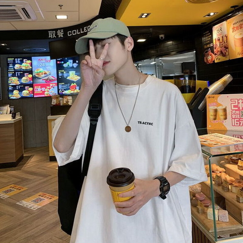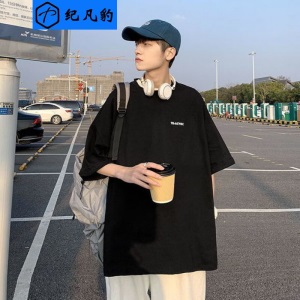 商品名称:@纪凡豹 100%纯棉短袖恤男简约百搭宽松港风五分袖潮流休闲上衣服体恤ins 白色ACYNC