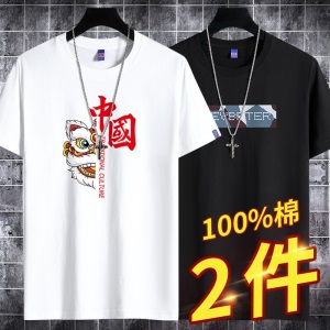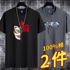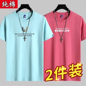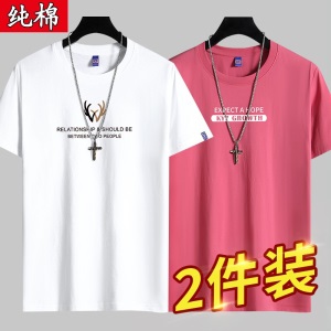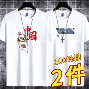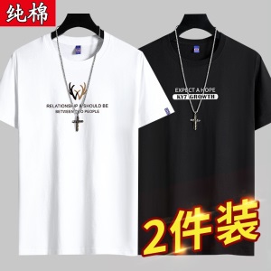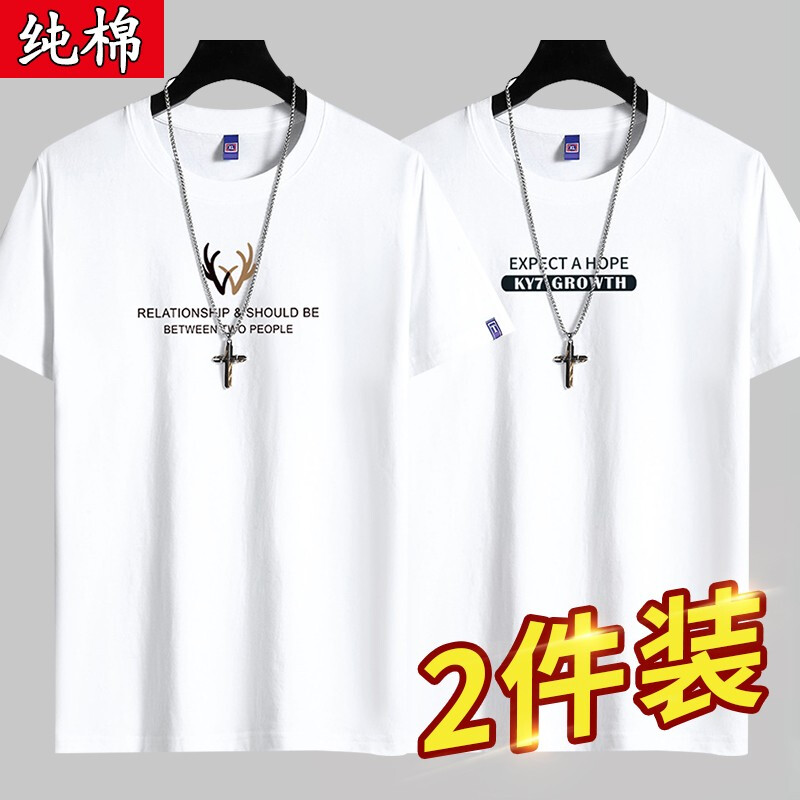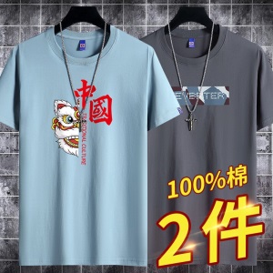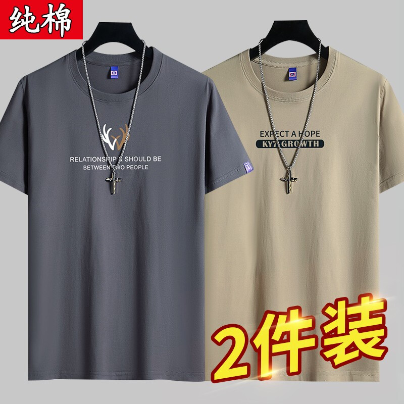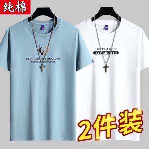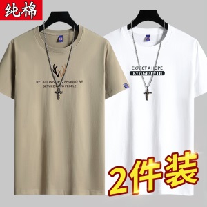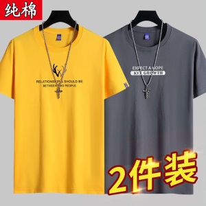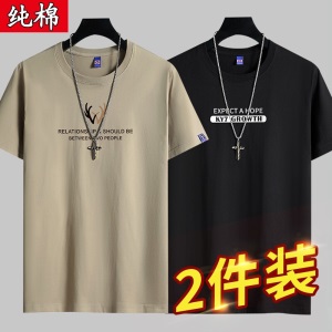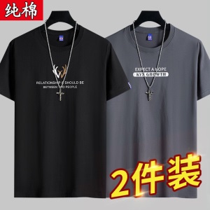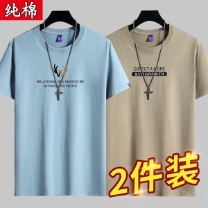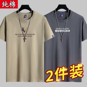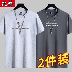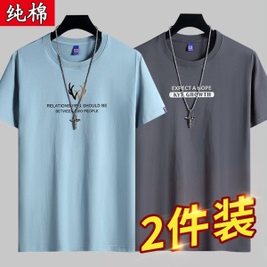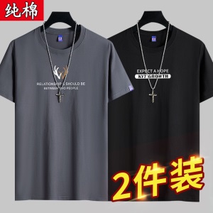 雾卡【纯棉2件】短袖t恤男纯棉半截袖衣服圆领休闲潮印花胖青年大码青少年夏季体恤汗衫