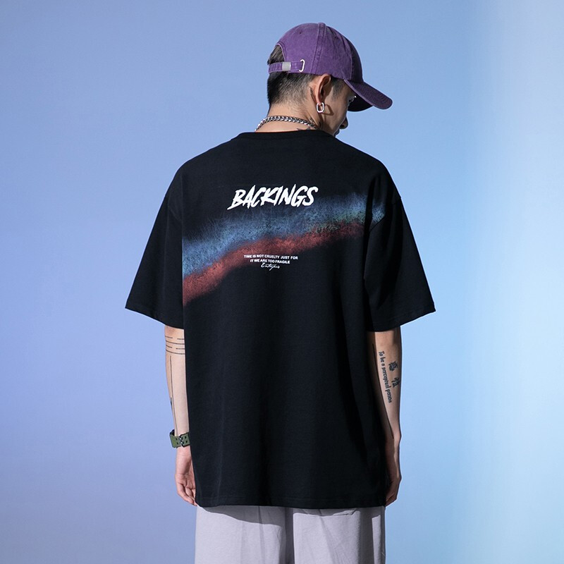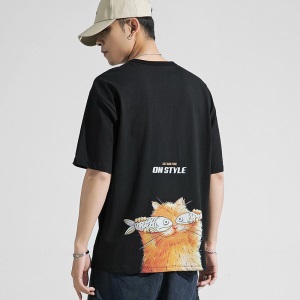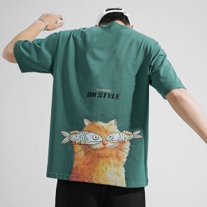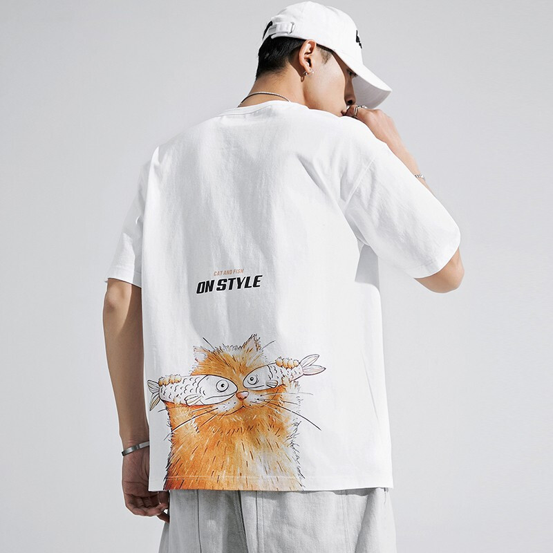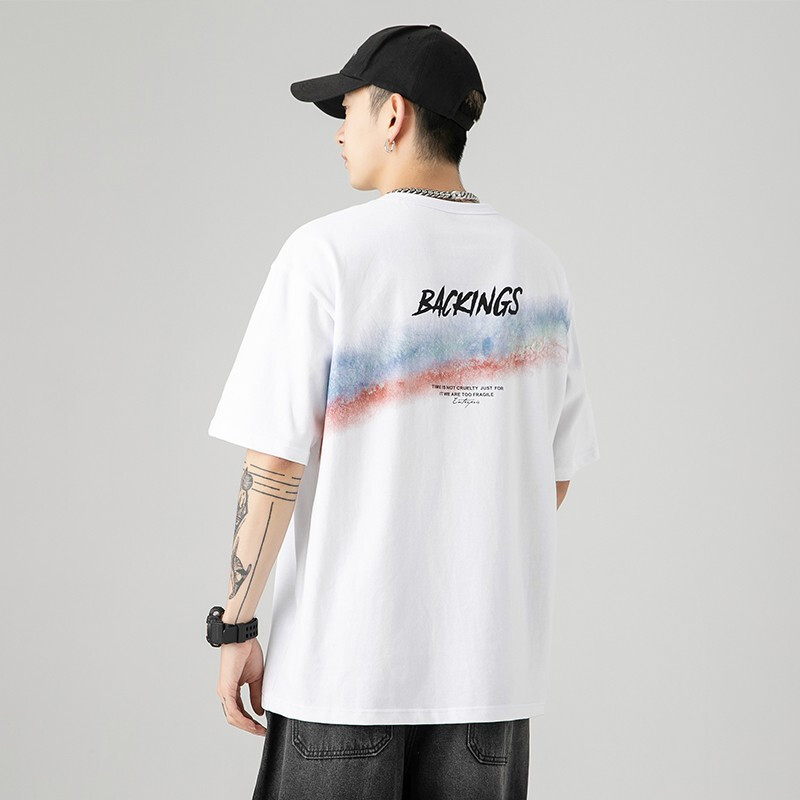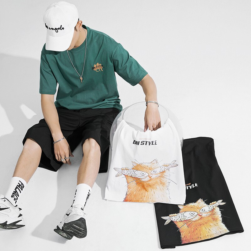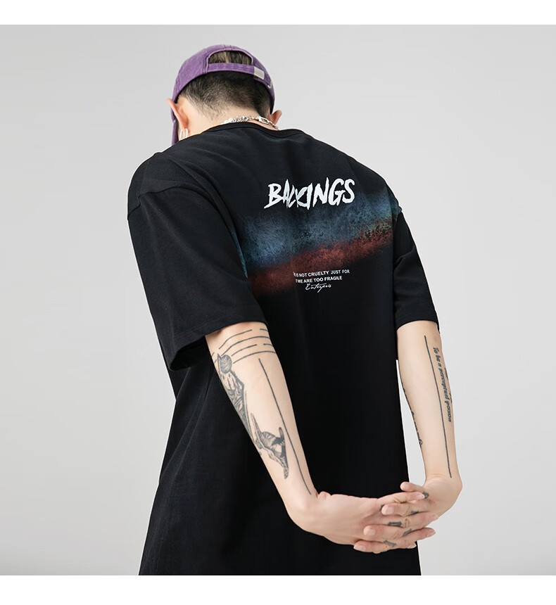 雾卡【纯棉2件】短袖t恤男纯棉半截袖衣服圆领休闲潮印花胖青年大码青少年夏季体恤汗衫