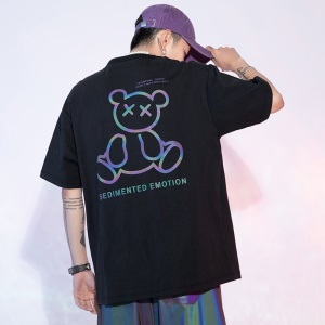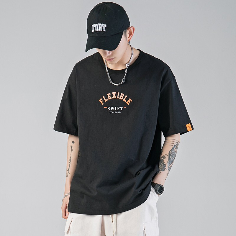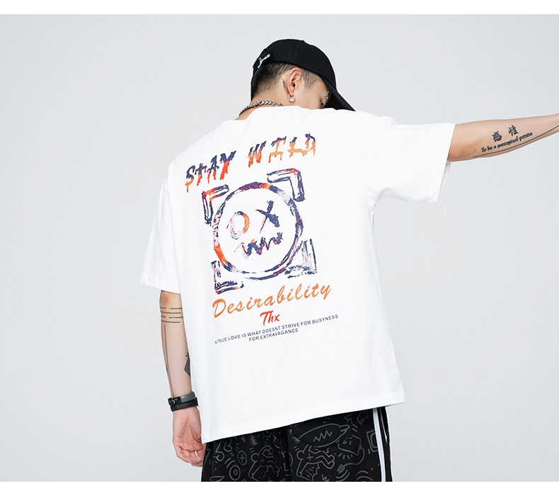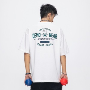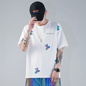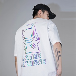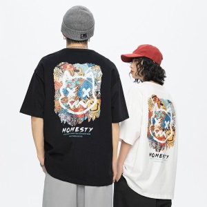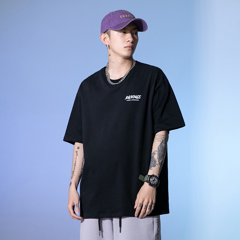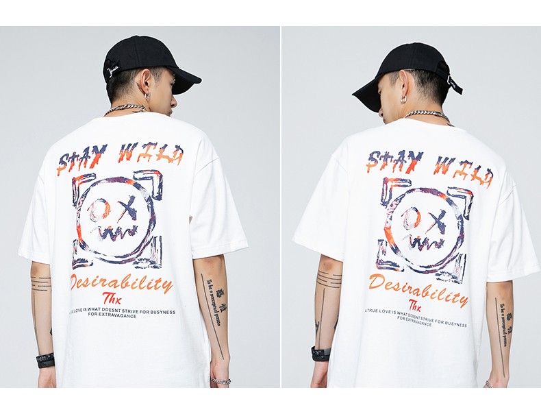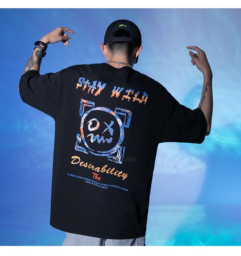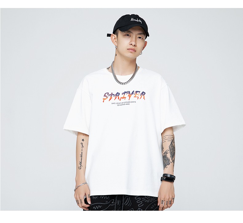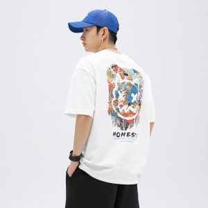 劲依狼 短袖t恤男 春夏季潮牌男装联名白T恤男女士打底衫衣服男圆领情侣装夏天韩版宽松体恤潮流五分半袖