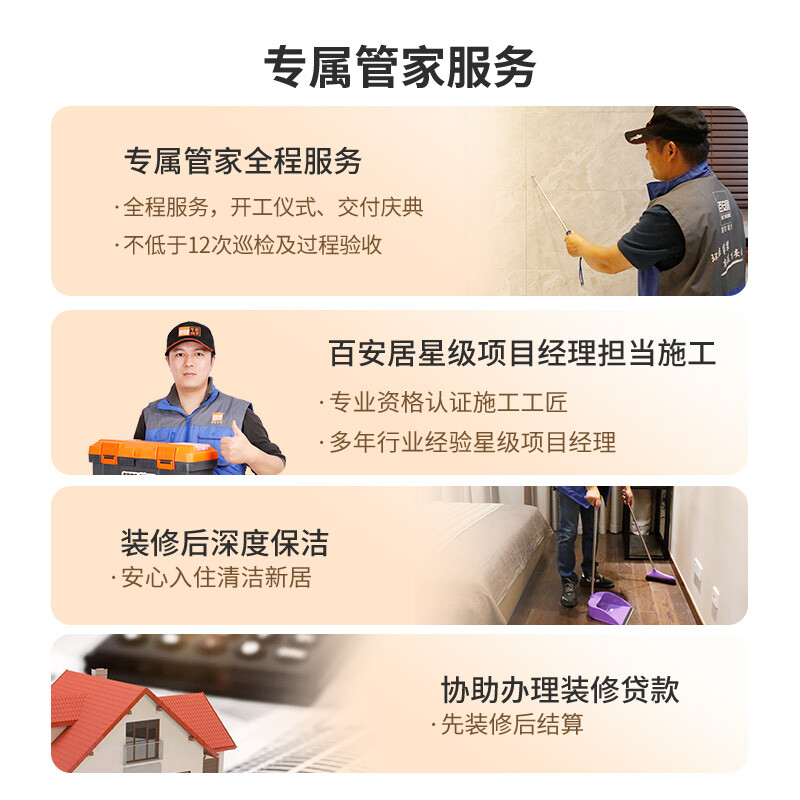 商品名称:【JD×百安居装修联名款】199999元/90㎡甄选全包装修套餐预付款 家装室内装修设计图 装潢公司