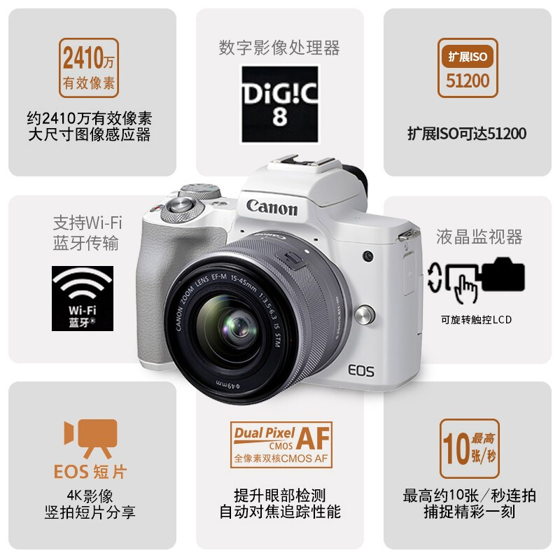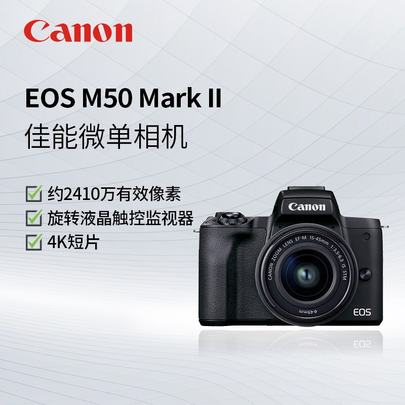 商品名称:【现货速发】佳能m50二代入门级微单反高清旅游数码学生款2代美颜vlog自拍照相机EOS canon M50 Mark II(EF-M15-45)